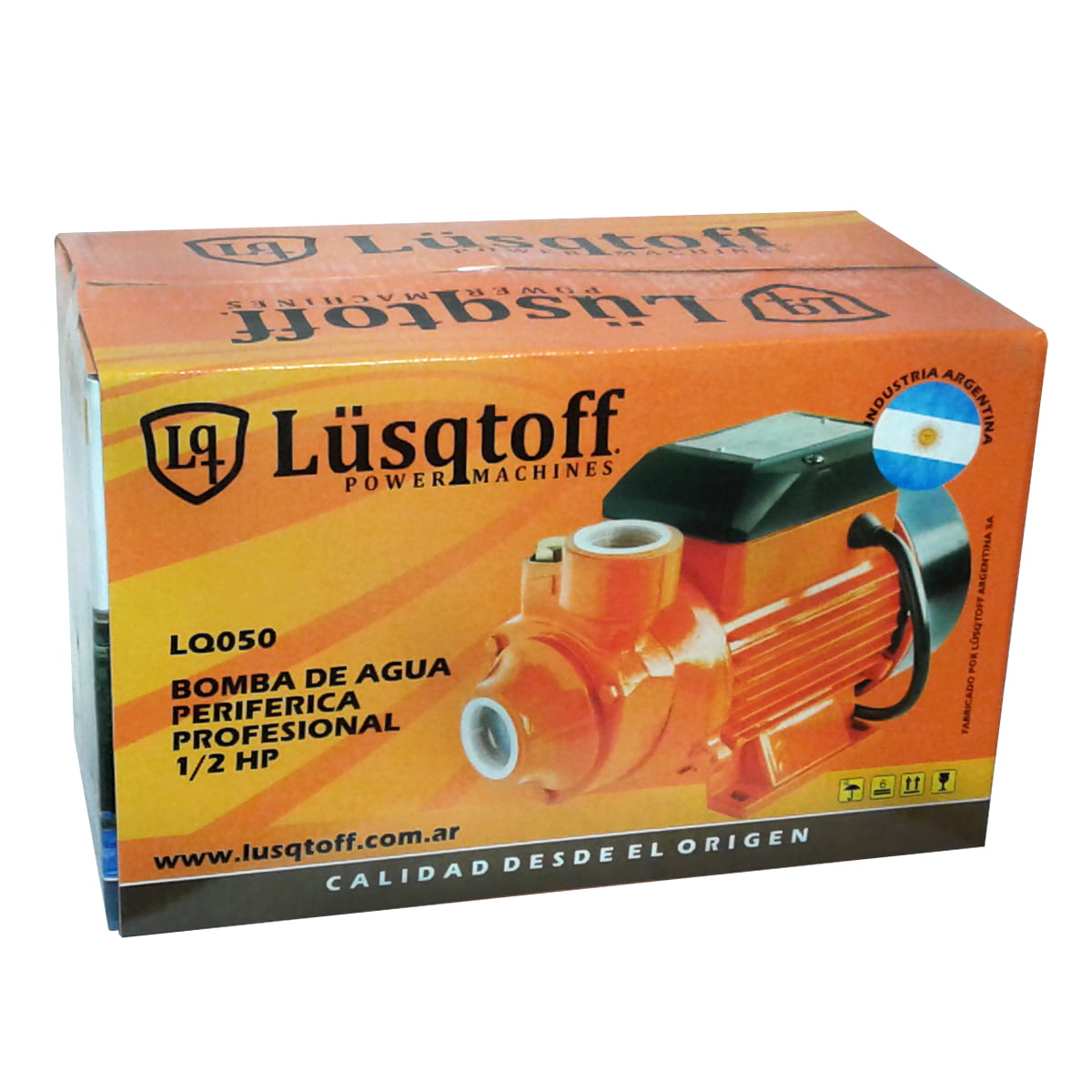 Electrobomba Lusqtoff Periferica *M60-1/2HP *3.9 Amp. *220 VOLTS *45 – 12 Litros/Minutos *Altura Máx. 10 – 30 Metros *Tamaño: 1» x 1» *Peso: 5.5Kg *Turbina: Bronce