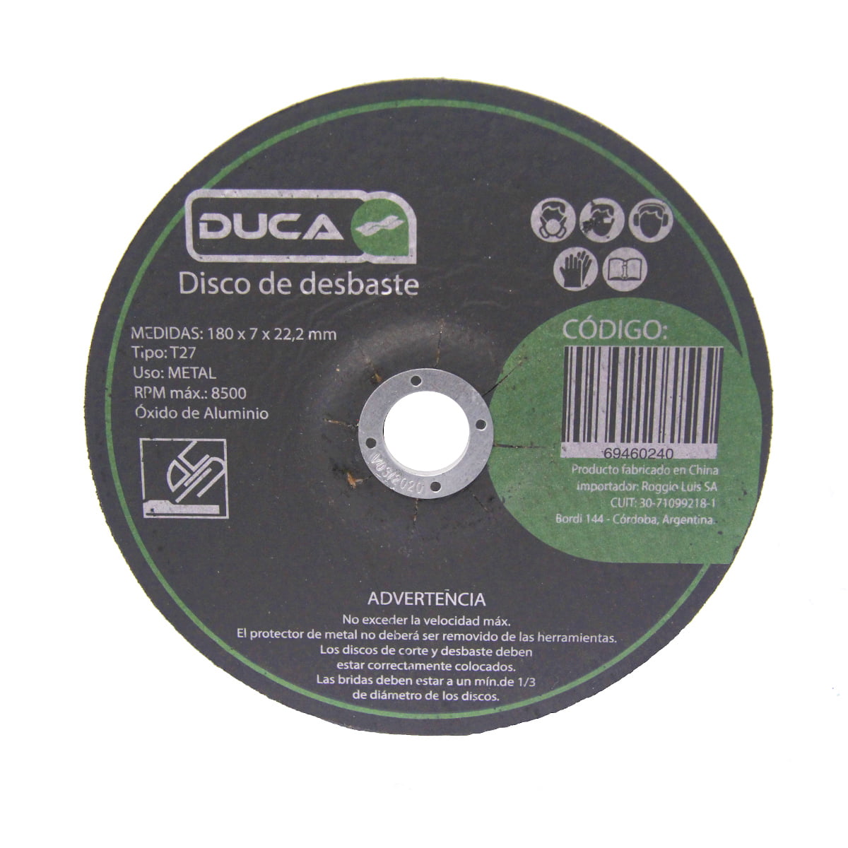 Disco Corte Centro Deprimido: *Tipo: T27 *Para Metal *Medidas: 180x7x22,2 *RPM: 8500 *Composicion: Oxido Aluminio *Caja 25 Unidades