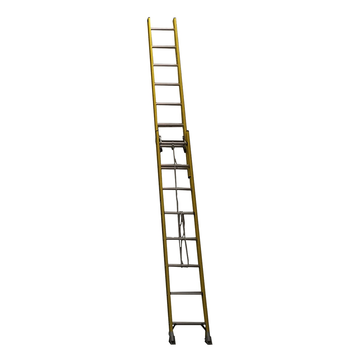 Escalera Fiberglass – Tipo Extensible – Material Fibra de Vidrio – 2 x 8 Peldaños – Altura Plegada 253 cm – Altura Extendida 406 cm – Cap. 136 Kg – Dieléctricas