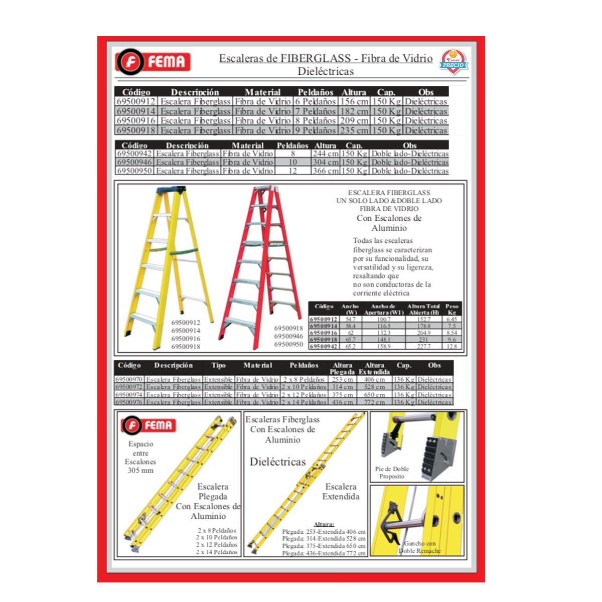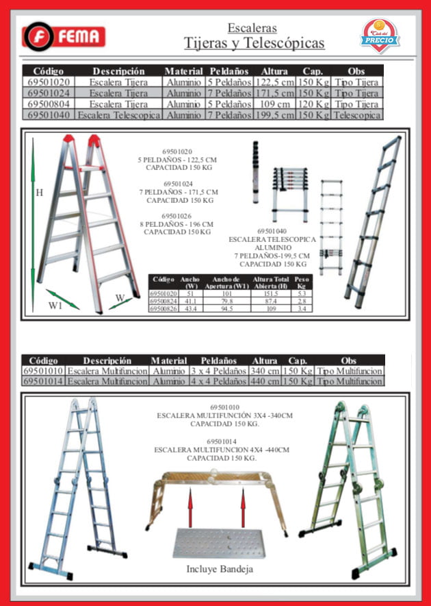 Escalera Tipo Hogar *Material: Aluminio *2 Peldaños *57 cm Altura *Cap.: 150 Kg