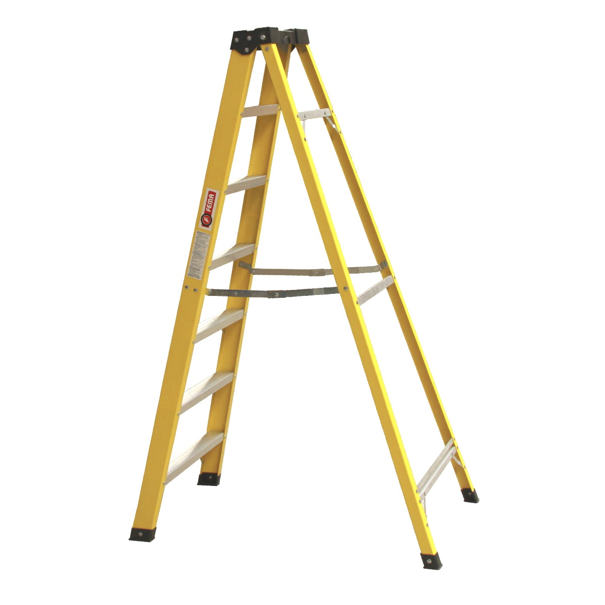 Escalera Fiberglass *Material: Fibra de Vidrio *7 Peldaños *182 cm Altura *Cap.: 150 Kg *Dieléctricas