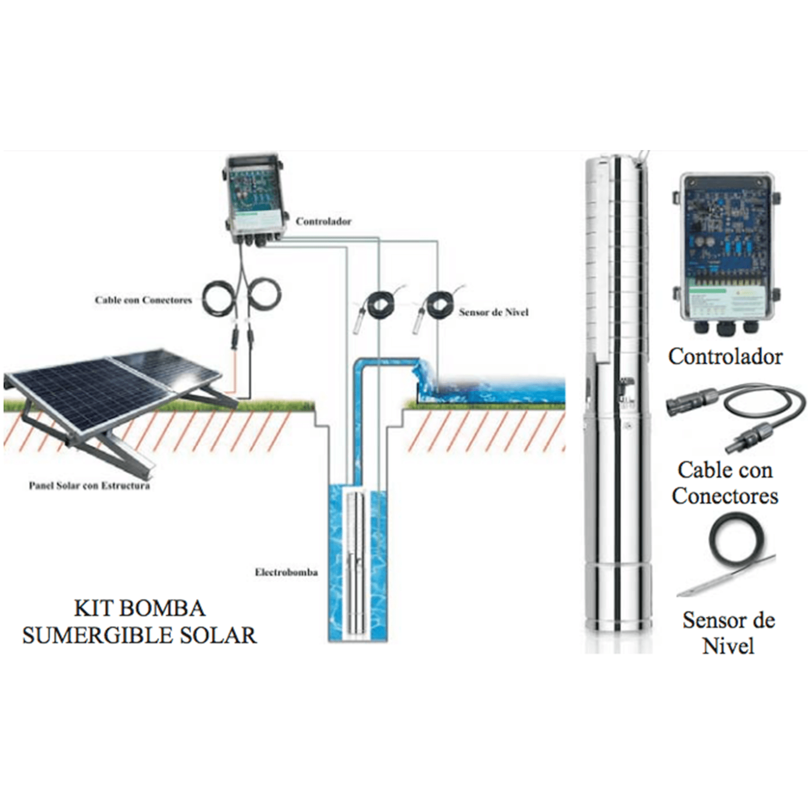 kit panel solar + electrobomba sumergible + sensor 36V 300W