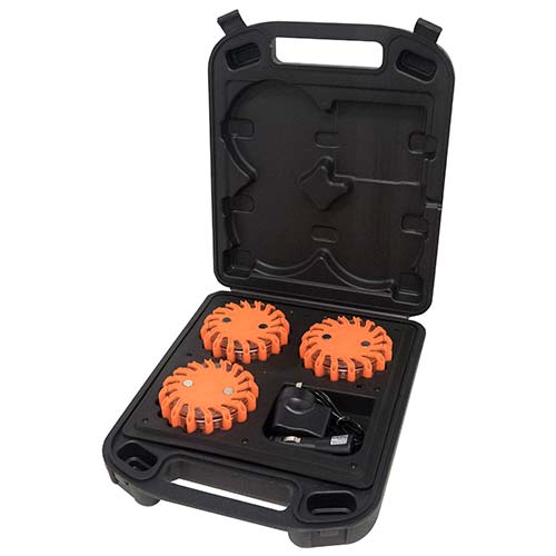LUZ BALIZA LED MAGNETICA- PACK 3 UNIDADES CON CARGADOR PARA 12V/24V AUTO O 220V Y MALETIN, HASTA 6 HORAS DE OPERACION CON UNA CARGA- DIFERENTES PATRONES DE LUZ