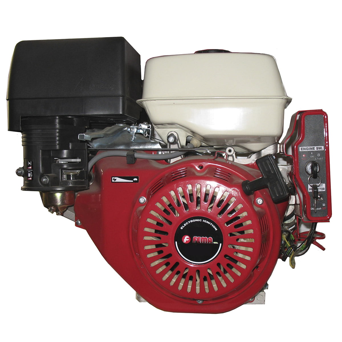 Motor a Explosión Horizontal *Marca FEMA *Mod.: 188 FD *13,00HP *390CC *Arranque Electrico *Eje: 25 mm *Tipo Eje: Cilindrico *Tanque: SI *Uso Universal